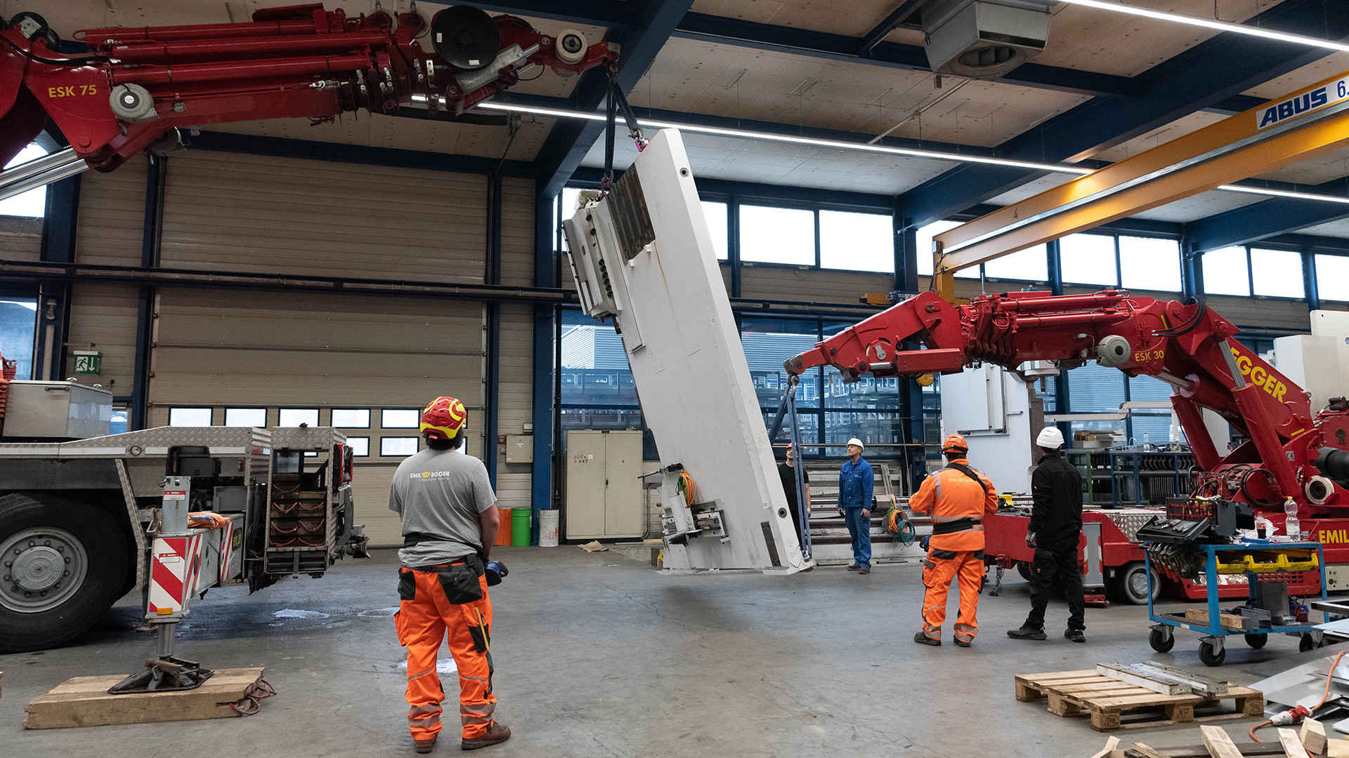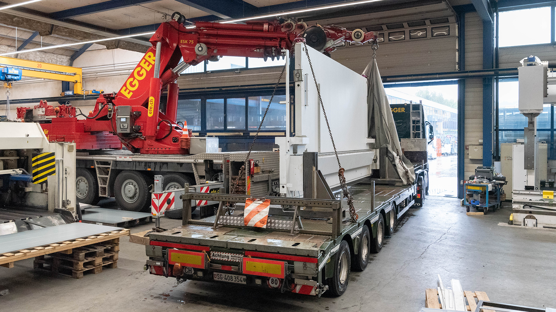 Das Blechcenter macht den Anfang: In den letzten Wochen wurden die tonnenschweren Maschinen vom Osten in den Westen der Stadt Gossau transportiert. Ältere Maschinen wurden verkauft und durch moderne ersetzt.