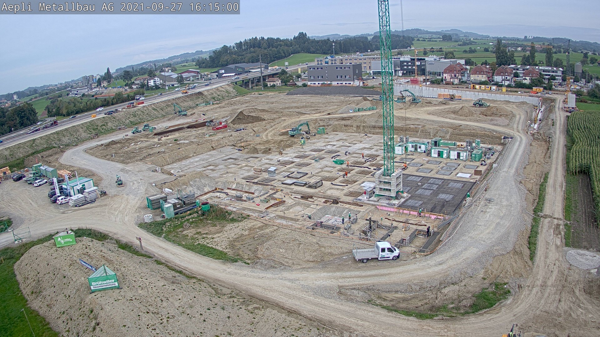Letzte Woche konnten die Bauarbeiter den ersten Baukran auf dem Gelände der Sommerau Nord aufbauen. Ein zweiter folgt Ende Oktober. Aktuell wird an der Tiefgarage mit den 166 Parkplätzen gearbeitet. Dafür wird zuerst die Bodenplatte und anschliessend die Wände und die Decke erstellt.