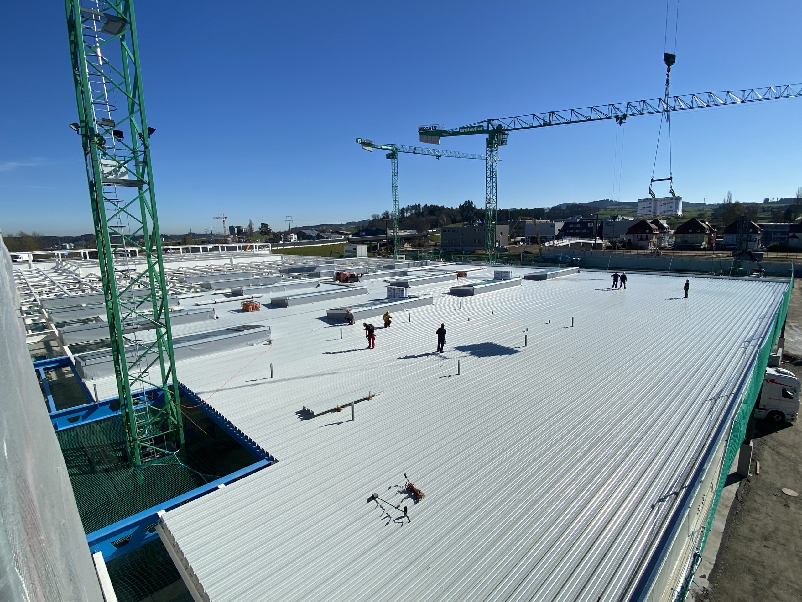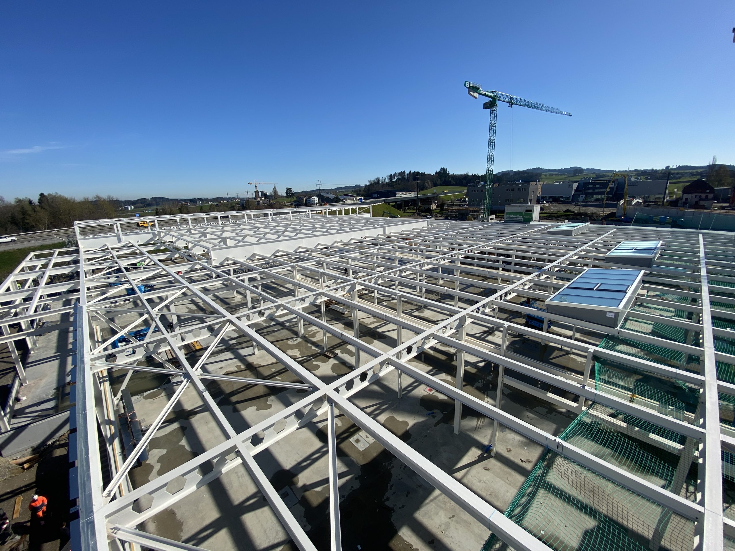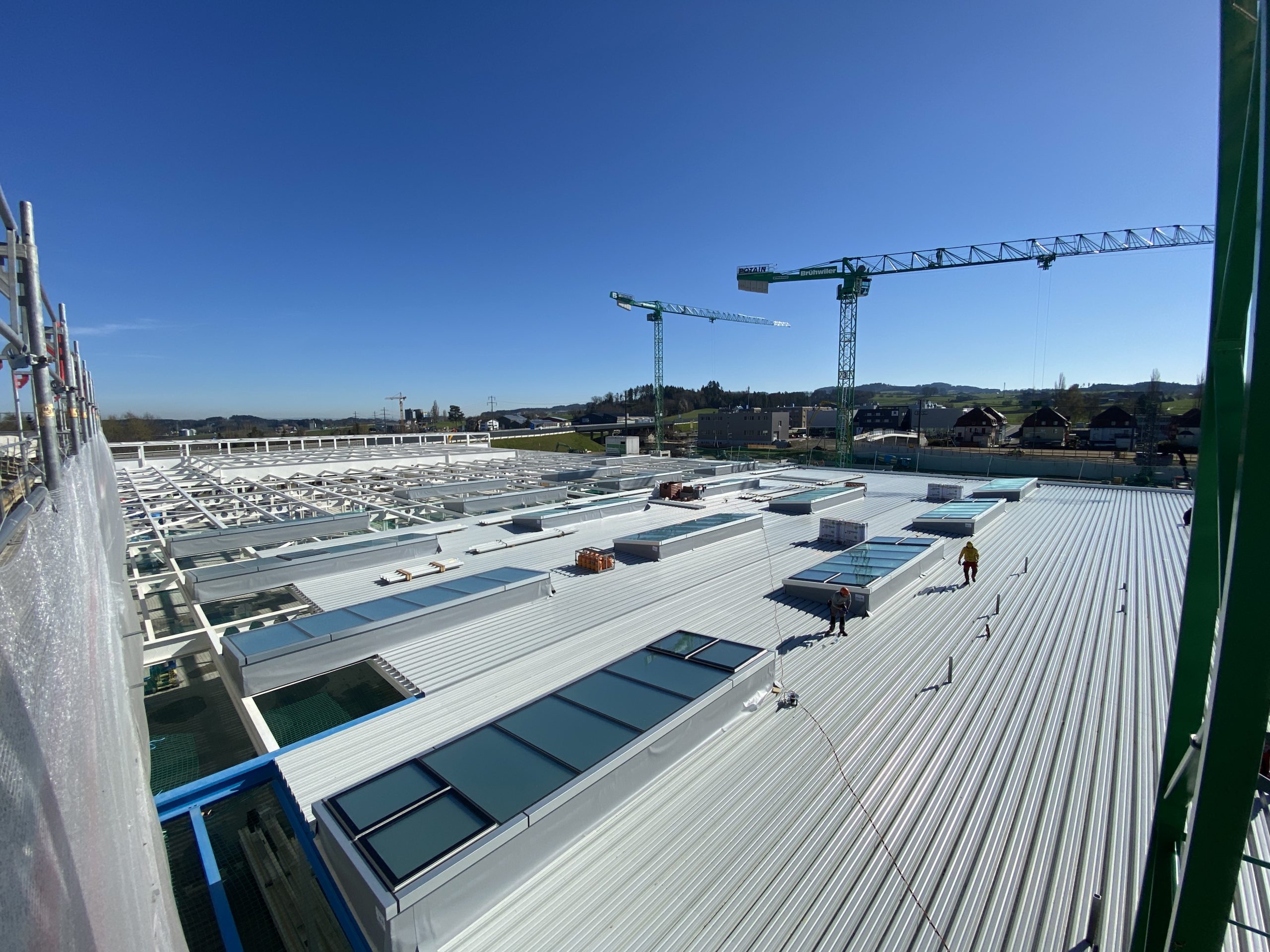 Bei schönstem Frühlingswetter wurde bei der Halle B die erste Etappe der Dachoblichter montiert. Die Dachoblichter wurden in enger Zusammenarbeit mit unseren Lernenden geplant, konstruiert, produziert und montiert.