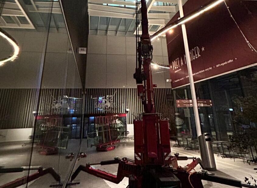 Aepli Metallbau AG realisiert die Elementfassade mit rund 630 Einzelelementen auf einer Gesamtfläche von 3'600 Quadratmetern. Als Systemgrundlage dient ein Sonderprofil auf Basis des Schüco AWS 75.SI+, geliefert von Jansen AG. Zur Gebäudehülle gehören zudem eine spezielle Brüstungsverkleidung von 670 Quadratmetern sowie ein umfassendes Lisenensystem mit 750 Laufmetern Hauptlisenen und 2'900 Laufmetern Nebenlisenen. Der Dachrand wird auf 315 Laufmetern ausgeführt. Den Sonnenschutz auf einer Fläche von 2'600 Quadratmetern übernimmt die Schenker Storen AG als Partnerunternehmen. Ergänzt wird das Leistungspaket durch Ganzglasgeländer, sechs Drehflügeltüren und drei automatische Schiebetüren. Die Metall Oberflächen werden pulverbeschichtet ausgeführt.