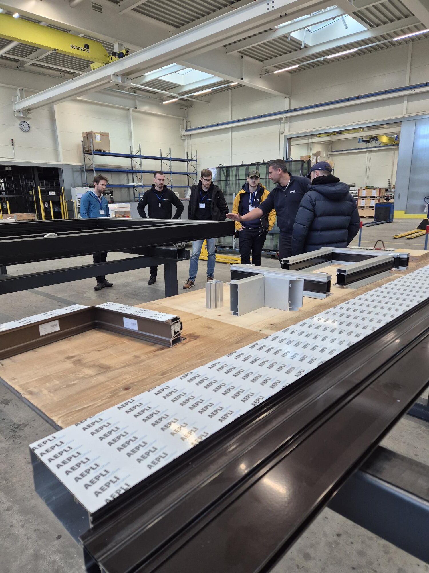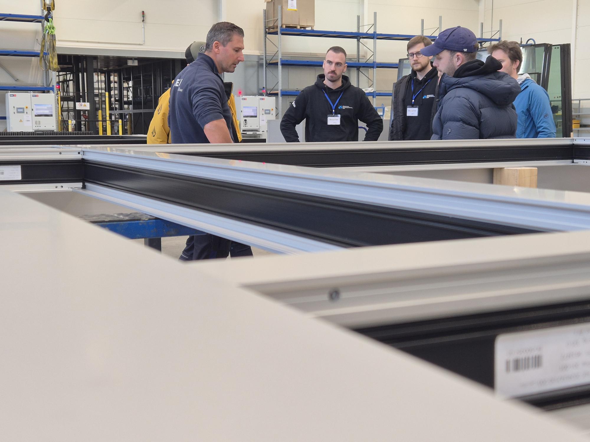 Vertiefte Inputs erhielten sie im Bereich Frästechnik Profilbearbeiten mit Werkstattleiter Raphael Brauner sowie im Bereich Fassadenelement-Zusammenbau und Verbindungstechnik mit Abteilungsleiter Patrick Benz.