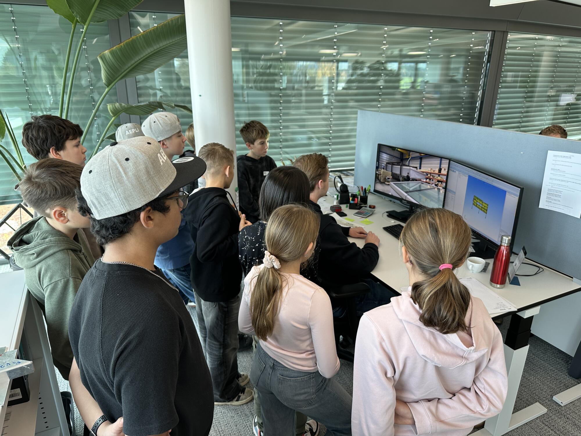 Der Morgen startete mit einer Begrüssung und einer ersten Betriebsbesichtigung. Anschliessend erhielten die Kids im technischen Büro Einblicke in die Tätigkeiten unserer Metallbaukonstrukteur:innen und durften sich selbst im 2D- und 3D-Zeichnen versuchen.