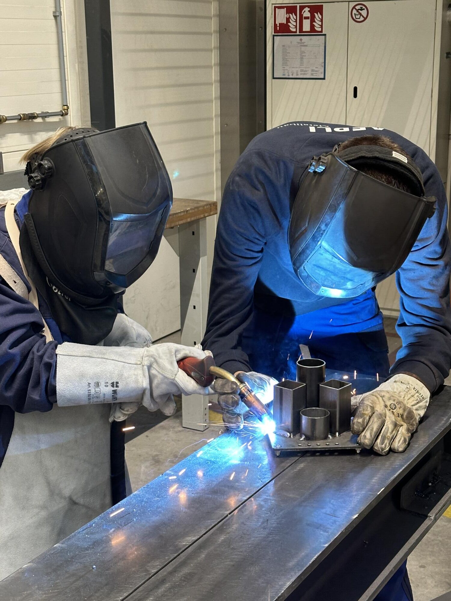 In unserer Produktion stellten die Nachwuchstalente ihr eigenes Metallobjekt, einen Tischbuttler, her. Mit viel Engagement wurde gebohrt, gesenkt, gefeilt und sogar geschweisst. Dabei entstanden tolle Einzelstücke und noch tollere Erfolgserlebnisse.